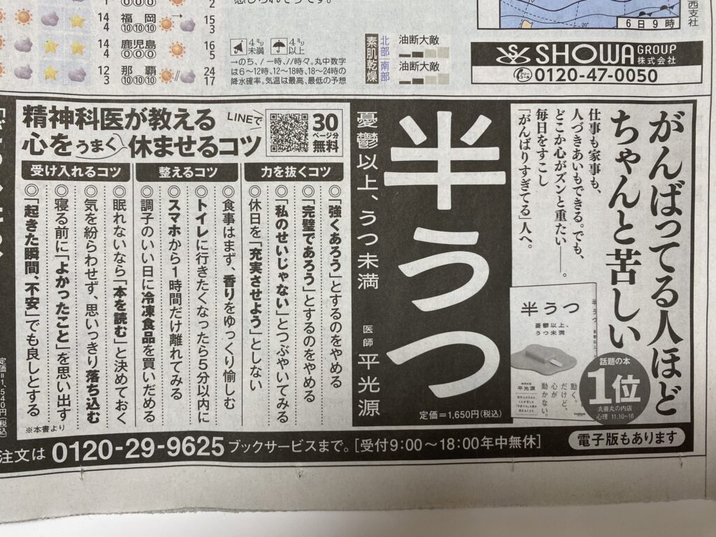 『半うつ 〜憂鬱以上、うつ未満〜』(サンマーク出版)が紙面で紹介されました。