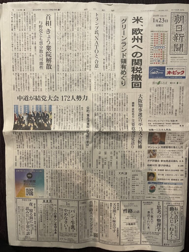 2026年1月23日付の朝日新聞にて、