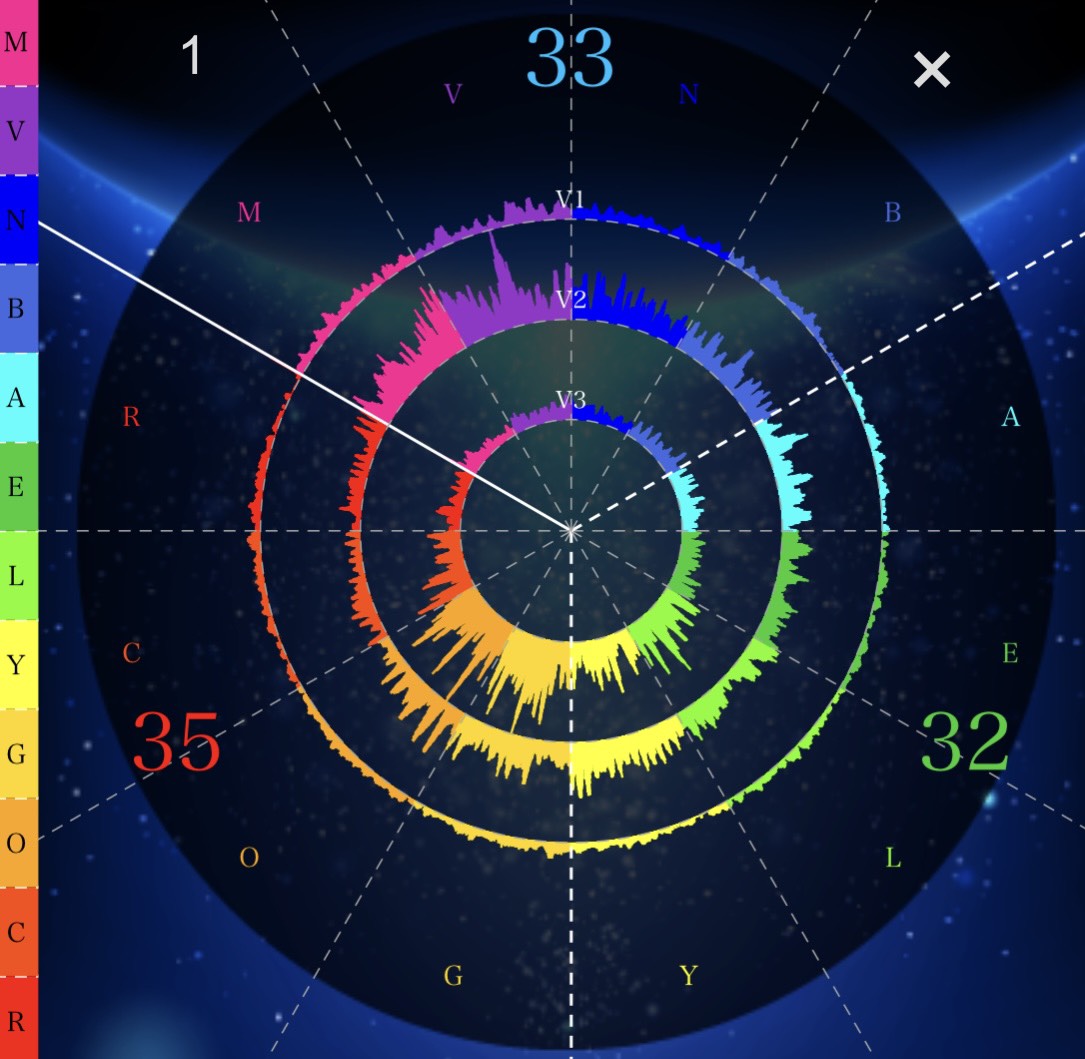 あなたの声の周波数を “12色の光と波形” として可視化し、無意識の傾向や心身のバランスを客観的に知るための手がかりになります。